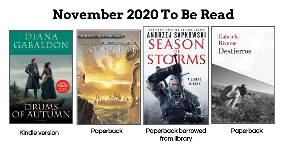 Now, it’s November 2020 and I’ve been an active member of a book club that reads award-winning fantasy and scifi. So for sure that book has to be on my monthly TBR. I also recently subscribed to Book of the Month Club, but decided to skip this month because nothing really caught my eye.